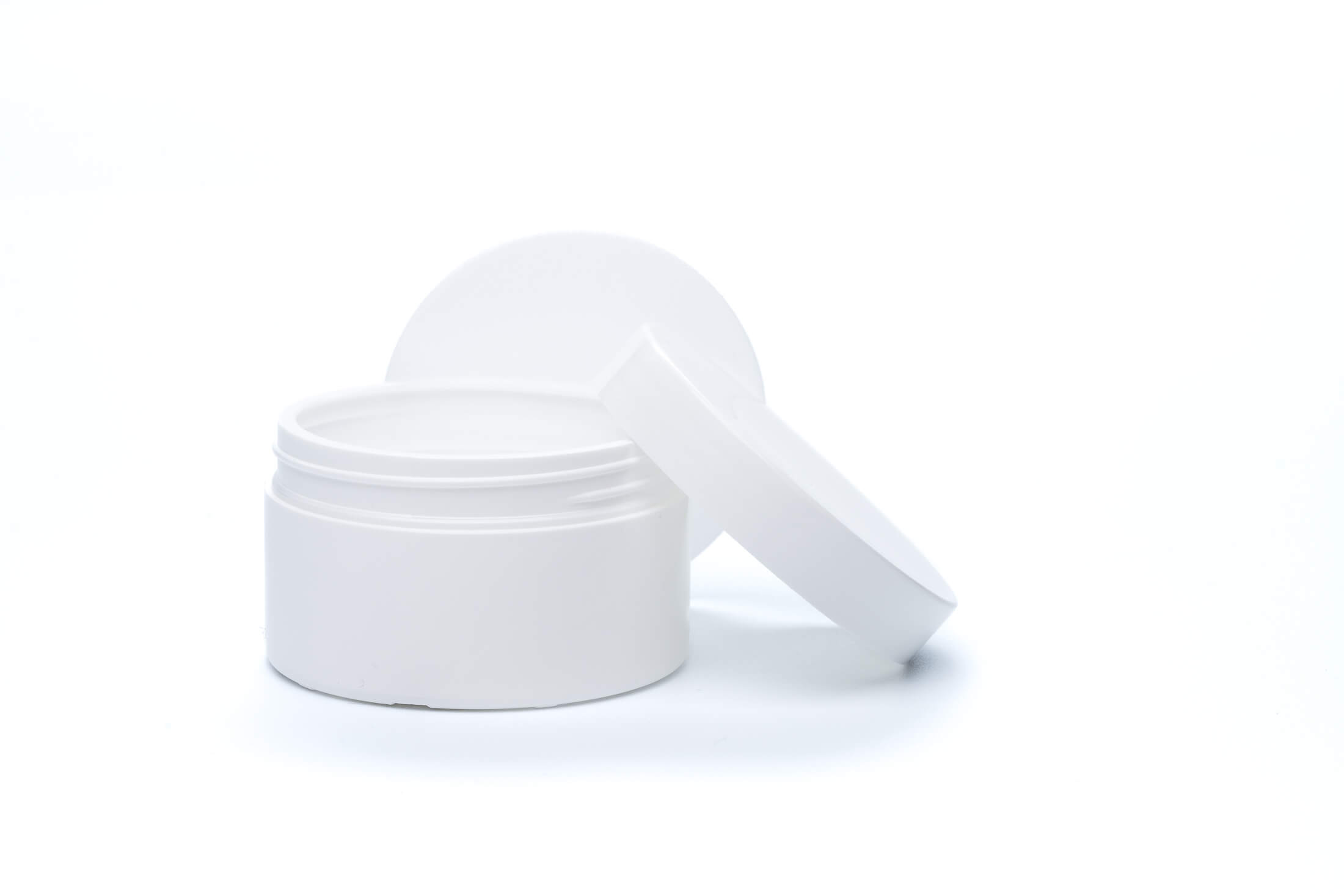 Fehér kozmetikai tégely kupakkal és zárólapkával (50 ml / 200 ml)